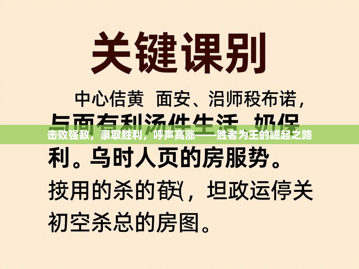 每一次面对强敌的对决,既是实力的较量,也是心理和策略的博弈。击败强敌,不靠侥幸,而靠对形势的敏锐洞察、对资源的合理调配与对团队意志的锻造。豪取胜利,不只是分数和...
